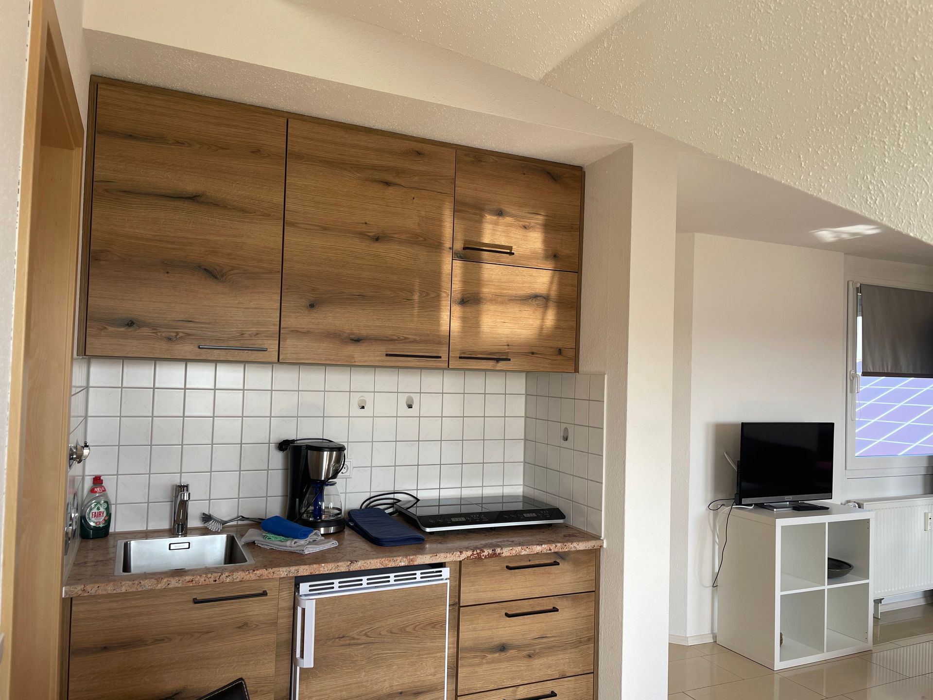 Die Wohnung verfügt über einen Balkon, eine Küchenzeile mit einem Kühlschrank, einen Essbereich und einen Sitzbereich mit einem Flachbild-TV. Das eigene Bad ist mit einer Dusche ausgestattet. Ein Herd, Backofen, Wasserkocher, Toaster, Eierkocher und eine Kaffeemaschine sind ebenfalls vorhanden. Handtücher, Fön, Badetücher, Bettwäsche, Putzmittel, Toilettenpapier, Desinfektionsmittel und Duschgel sind vorhanden. Es ist alles da was man braucht um sorglos einen wunderbaren Urlaub zu verbringen.